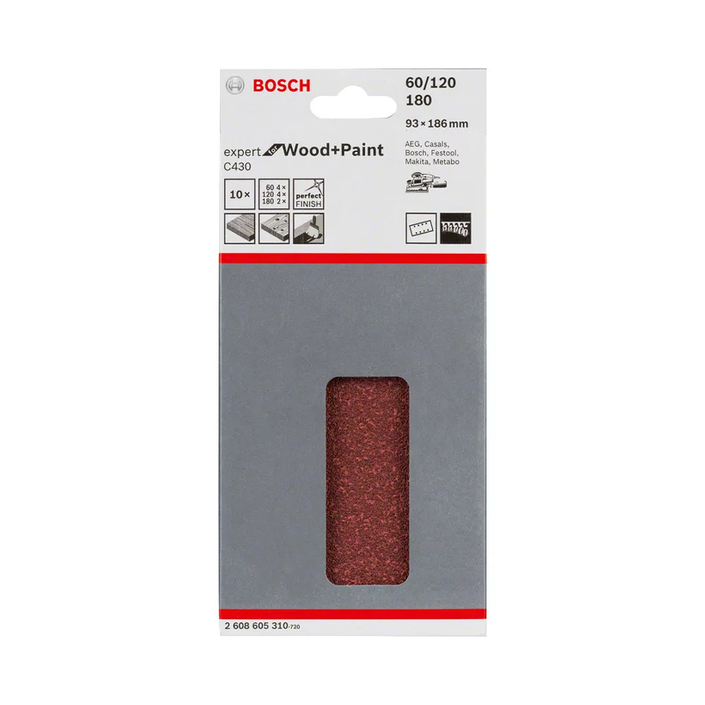 Bosch EXPERT C430 Wood csiszolópapír készlet rezgőcsiszolókhoz 93x186 mm, 10 részes