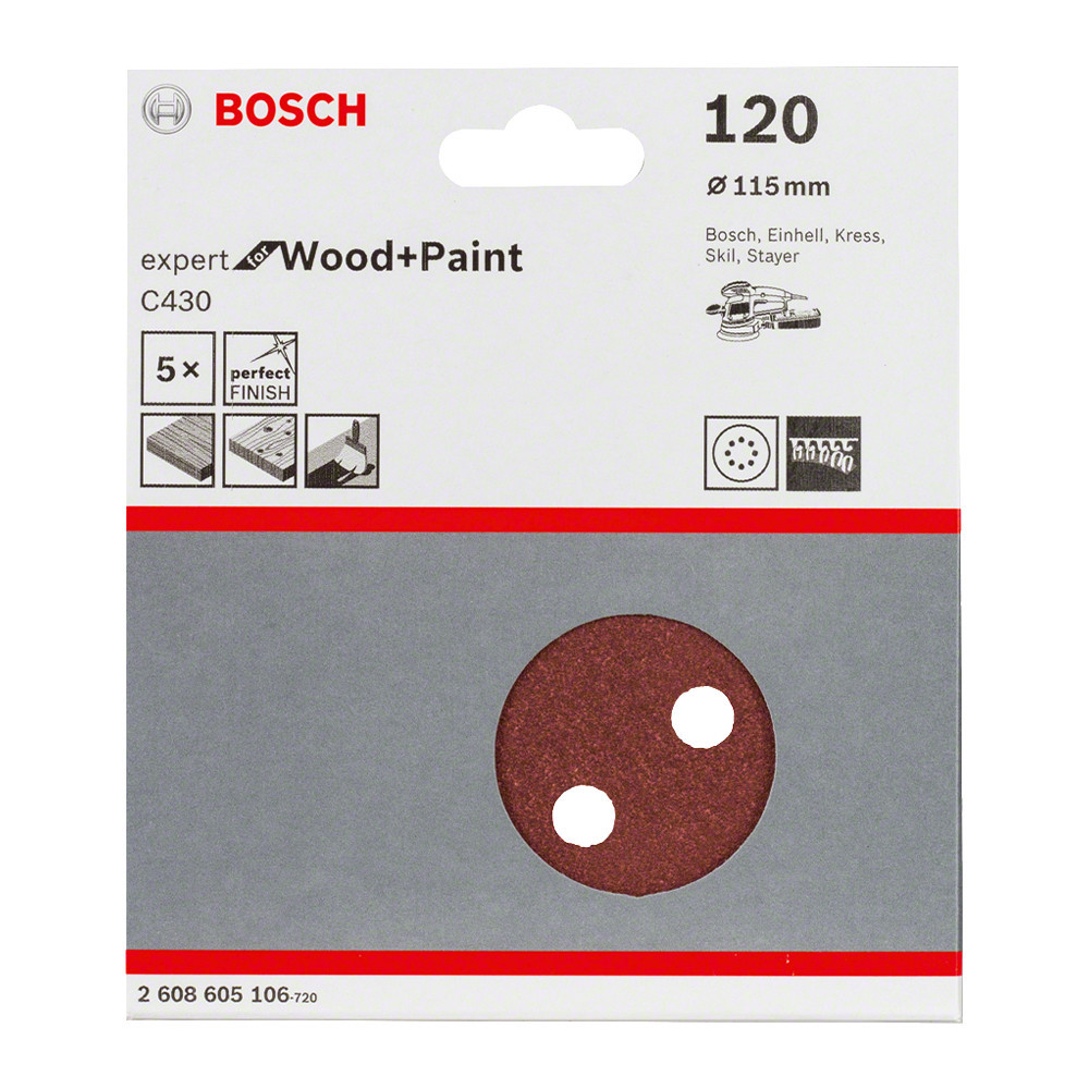 Bosch EXPERT C430 csiszolópapír excentercsiszolókhoz, fa és festék, , 5db 115mm, G120, 8 lyuk