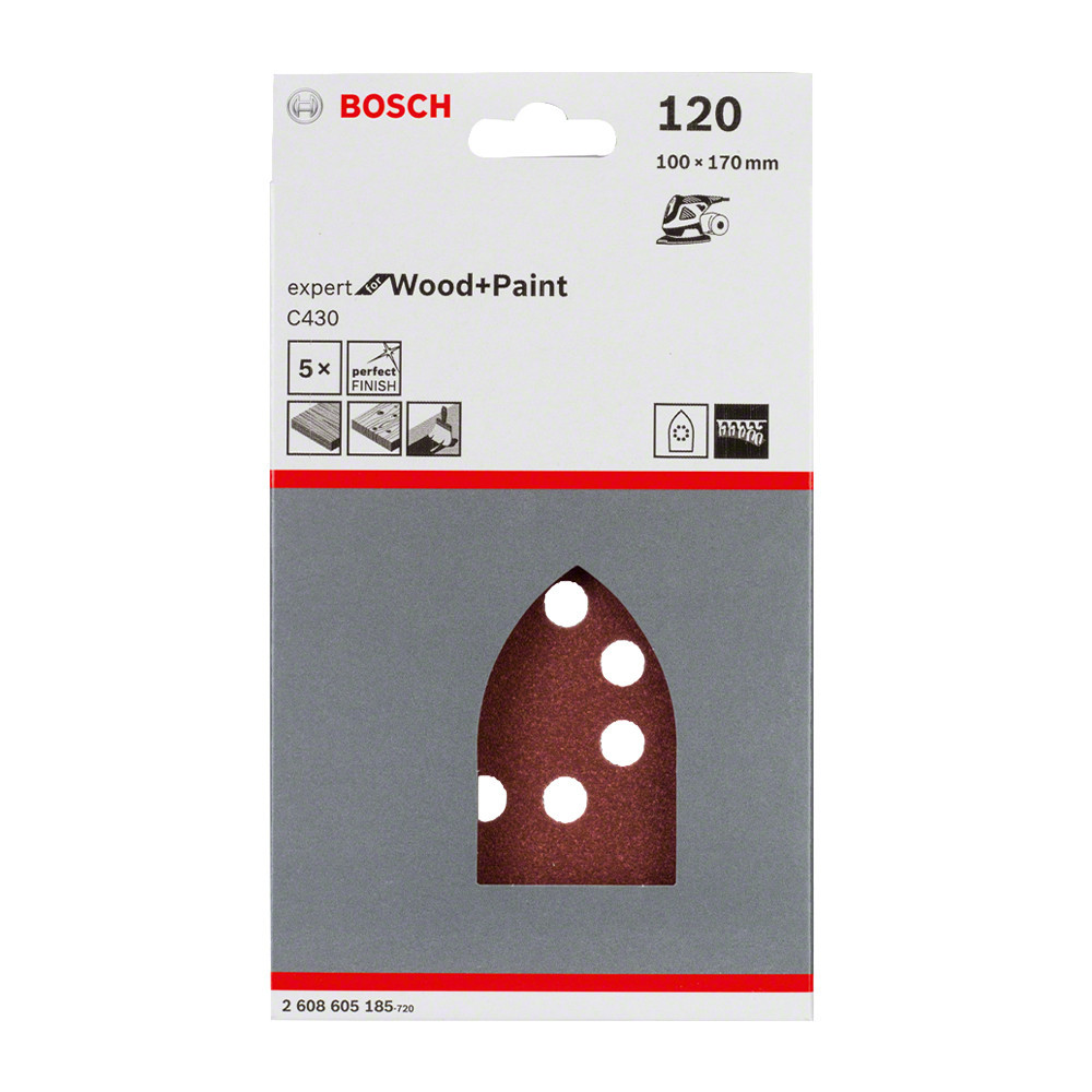Bosch EXPERT C430 csiszolópapír multicsiszolókhoz, fa és festék, 100x170 mm, P120, 5db