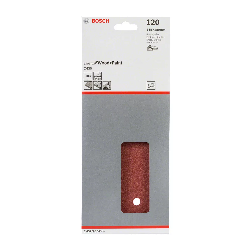 Bosch EXPERT C430 csiszolópapír rezgőcsiszolókhoz, fa és festék, 115x280 mm, G120, 10db