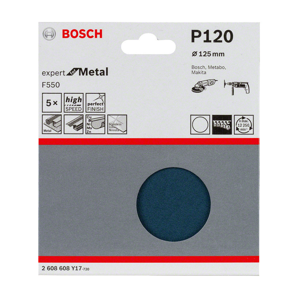 Bosch EXPERT F550 csiszolópapír, Metal 125 mm, P120, lyuk nélkül sarokcsiszolókhoz, 5db