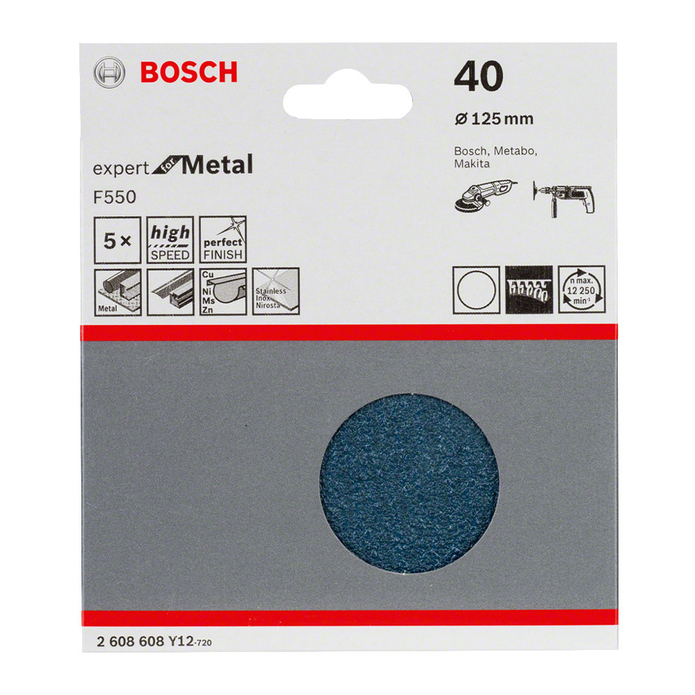 Bosch EXPERT F550 csiszolópapír, Metal 125 mm, P40, lyuk nélkül sarokcsiszolókhoz, 5db