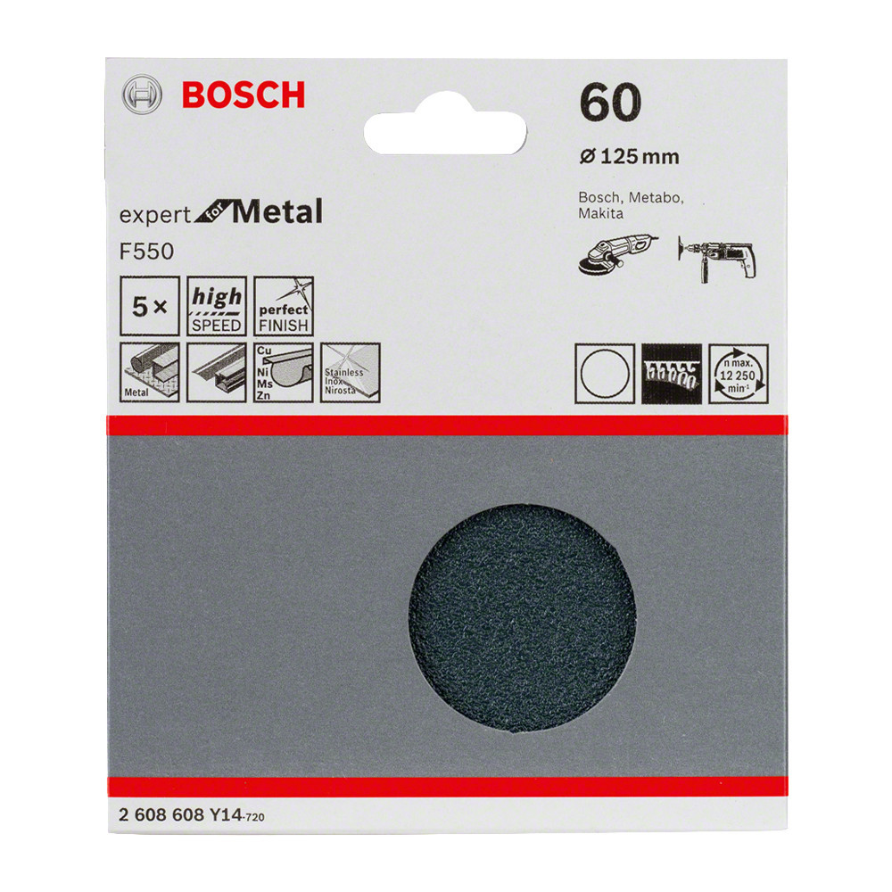 Bosch EXPERT F550 csiszolópapír, Metal 125 mm, P60, lyuk nélkül sarokcsiszolókhoz, 5db