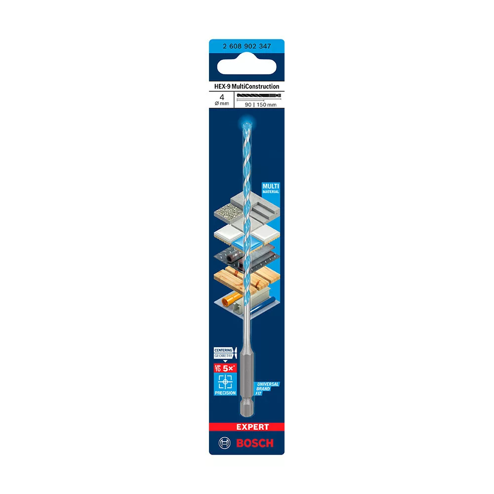 Akár 5x pontosabb, mint a Bosch CYL-3 fúrószár - A modern építkezésen sokféle anyagon kell dolgozni, és soha nem tudni, mit kell majd fúrni legközelebb. A megfelelő fúrószár megtalálása nehéz és időigényes lehet – hacsak nincs kéznél az EXPERT MultiConstruction fúrószár. Ez a rendkívül sokoldalú fúrószár hegyes csúcsának és fejlett geometriai kialakításának köszönhetően megcsúszás nélkül tud pontosan fúrni kemény anyagokba, például gránitba. A finomköszörülési gyártási technikánkkal optimalizált keményfémből készült, így beton, tégla, puha csempe, fa és fém fúrására is alkalmas. Mindig professzionális munkát végez – bármi legyen az anyag. A Bosch EXPERT HEX-9 MultiConstruction fúrószár az egyetlen fúrószár, amelynek mindig a szerszámosládában a helye: you'll never get stuck on a job or waste time looking for the right bit. Hatlapú befogószár az erős csatlakozás és a maximális nyomatékátvitel érdekében, hárompofás tokmányokban és ¼"-os belső hatlapú szerszámtartókban