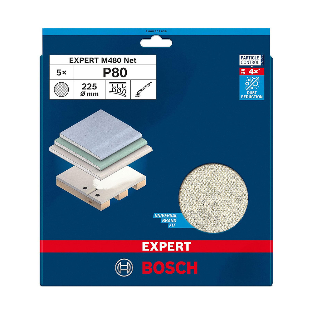 Használd közdarabokkal a fejlett porcsökkentés és a hatékony fa-, festék- és gipszkartoncsiszolás érdekében - A Bosch Particle Control gondoskodik arról, hogy minden porszemcse a porszívóba vagy a szűrőbe kerüljön. A rendszer elsődleges eleme a Bosch EXPERT M480 csiszolóháló: A részecskék egyenesen áthaladnak a nyitott hálóstruktúráján, így nem tömítik el a felületet és nem szennyezik a levegőt. Ezáltal kiemelten hatékony és rendkívül tartós is. Csak ragaszd fel tépőzárral