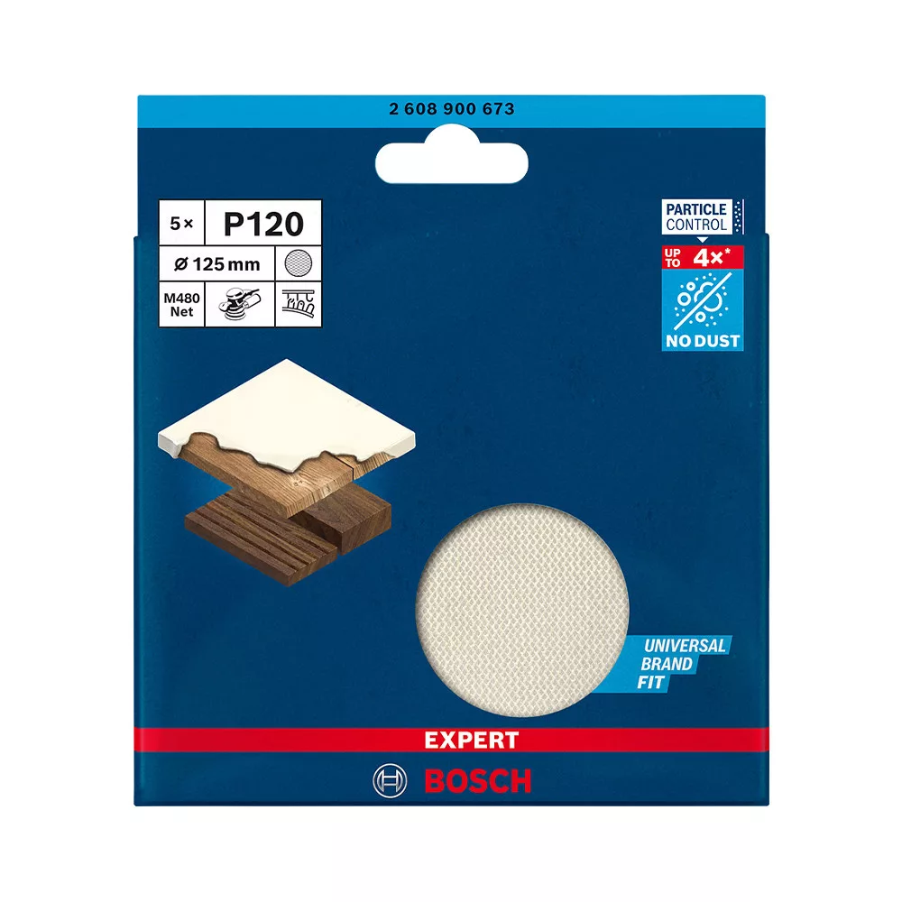 Használd közdarabokkal a fejlett porcsökkentés és a hatékony fa-, festék- és gipszkartoncsiszolás érdekében - A Bosch Particle Control gondoskodik arról, hogy minden porszemcse a porszívóba vagy a szűrőbe kerüljön. A rendszer elsődleges eleme a Bosch EXPERT M480 csiszolóháló: A részecskék egyenesen áthaladnak a nyitott hálóstruktúráján, így nem tömítik el a felületet és nem szennyezik a levegőt. Ezáltal kiemelten hatékony és rendkívül tartós is. Csak ragaszd fel tépőzárral