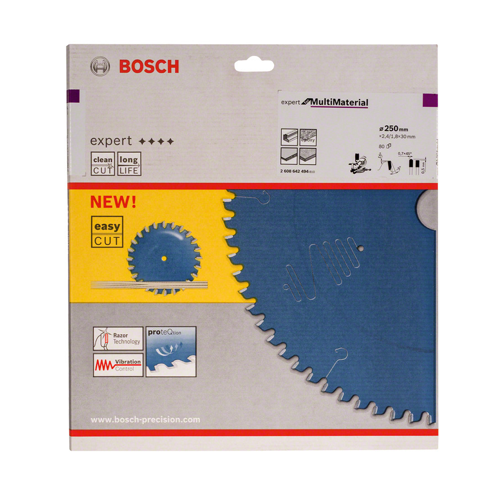 Bosch EXPERT Multi Material körfűrészlap 250x2,4/1,8 30 T80 fog, TCG nemvasfém, aluminium, fa