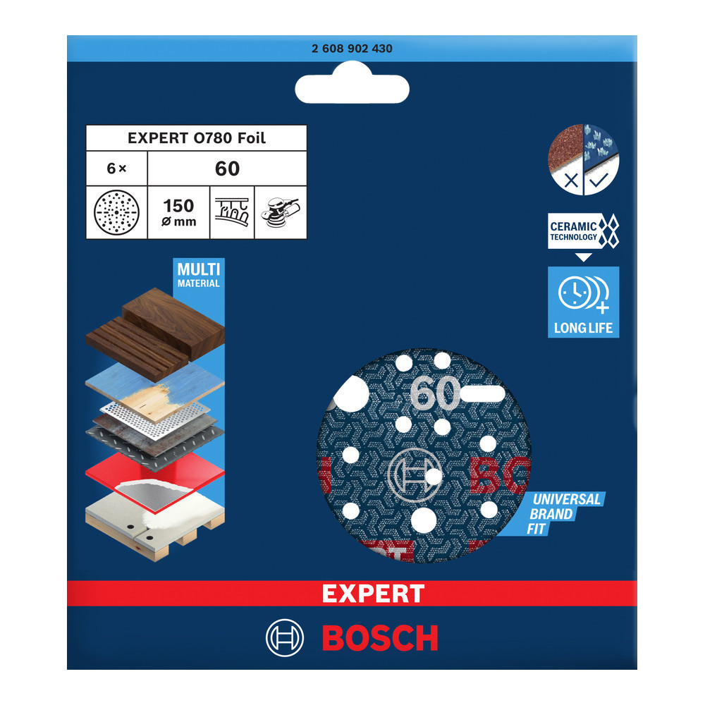 Bosch EXPERT O780 Foil csiszolófólia, 150mm, G60 6 db