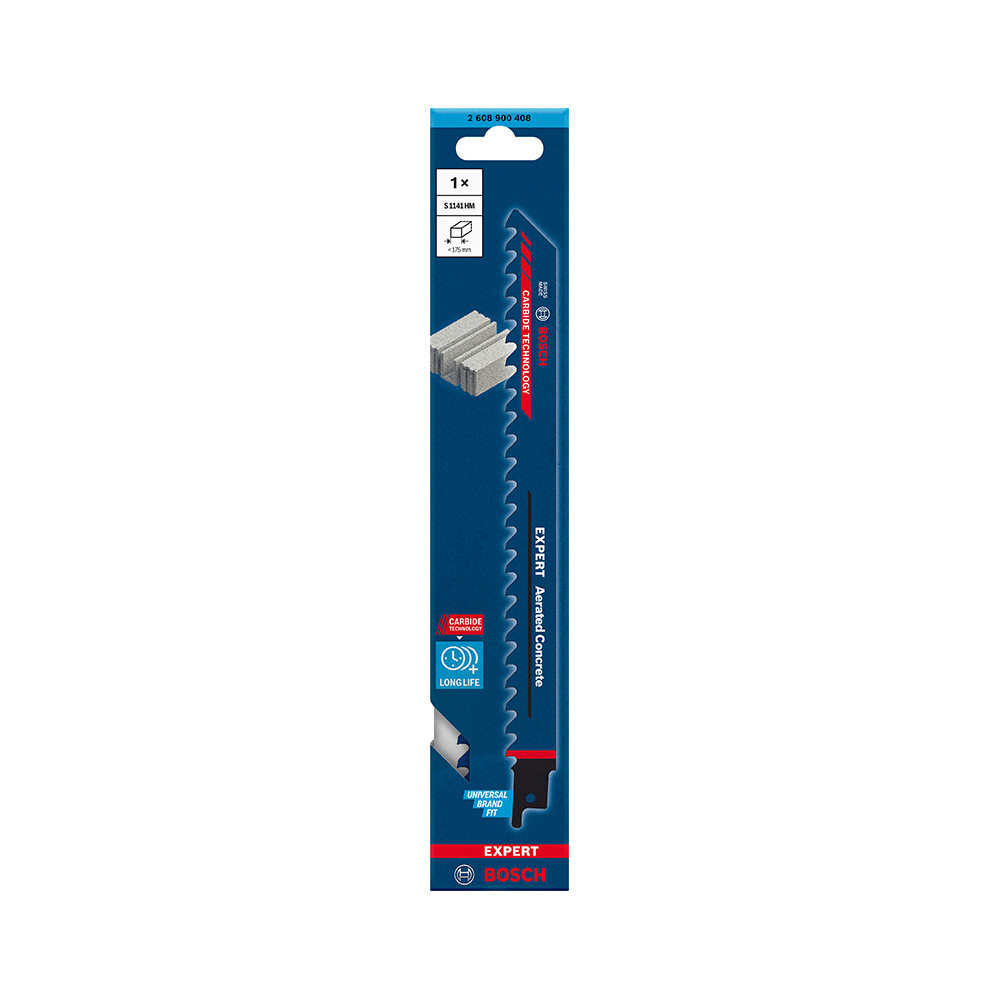 Gázbeton vágásához hosszú élettartammal - A Bosch EXPERT 'Aerated Concrete' szablyafűrészlap egy speciális fűrészlap gázbeton tömbökhöz. A Bosch Carbide Technology jóvoltából fogak napról napra csak vágják ezeket az anyagokat. Minden S befogószárú szablyafűrészhez használható
