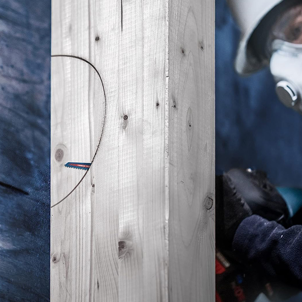 Fába ágyazott fém íves vágása hosszú élettartammal - Fa fémmel, csiszoló hatású kompozitokkal és szendvicspanelekkel: a Bosch EXPERT 'Wood with Metal' szablyafűrészlapja mindegyikkel elbír. A Bosch Carbide Technology megoldása páratlan képességeket, hosszú élettartamot és termelékenységet kínál az építő szakemberek, tetőfedők, villanyszerelők és konyhai szerelők számára. A többi keményfém fűrészlaphoz képest további előnye, hogy keskeny teste ívelt vágásokhoz optimalizált. Minden S befogószárú szablyafűrészhez használható