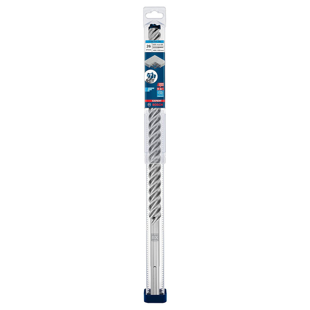 Akár 3x tovább tart, mint a Bosch SDS max-4 fúrószár - A vasbeton átfúrása nehéz munka, és hagyományosan a kalapácsfúrókat is megviseli. Még a 4 élű kivitelek is gyorsan elhasználódnak, ami a tartozékok cseréjéhez és a kellékanyagok beszerzéséhez szükséges leállást eredményez. Az EXPERT SDS max-8X tömör keményfém feje egy továbbfejlesztett 4 élű kialakítás, amely a legkeményebb fém egyetlen darabjából készült: Nem akad el, és nem lágyul el a kalapálás során. A Bosch Carbide Technology és a tömör keményfém fej jóvoltából az EXPERT SDS max-8X típus sokkal tovább bírja, mint a hagyományos kalapácsfúrók. Hatékonyan üti át a betonvasat is, így nincs szükség megállásra, újracélzásra vagy szárcserére, amikor acélt ér. A Bosch EXPERT SDS max-8X kalapácsfúró páratlan teljesítményt, megbízhatóságot és hosszú élettartamot kínál az építőipari mesteremberek számára, akik rendszeresen fúrnak betont és vasbetont, például nagy teherbírású dübelek elhelyezéséhez vagy betonacél-hosszabbításokhoz. Ez az EXPERT (szakértő) kiegészítő az SDS max fúrókalapácshoz. Minden SDS max kalapácsfúróval használható