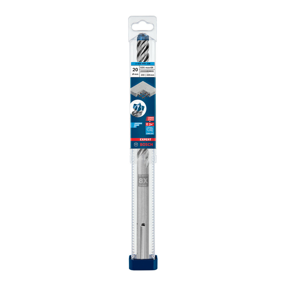 Akár 3x tovább tart, mint a Bosch SDS max-4 fúrószár - A vasbeton átfúrása nehéz munka, és hagyományosan a kalapácsfúrókat is megviseli. Még a 4 élű kivitelek is gyorsan elhasználódnak, ami a tartozékok cseréjéhez és a kellékanyagok beszerzéséhez szükséges leállást eredményez. Az EXPERT SDS max-8X tömör keményfém feje egy továbbfejlesztett 4 élű kialakítás, amely a legkeményebb fém egyetlen darabjából készült: Nem akad el, és nem lágyul el a kalapálás során. A Bosch Carbide Technology és a tömör keményfém fej jóvoltából az EXPERT SDS max-8X típus sokkal tovább bírja, mint a hagyományos kalapácsfúrók. Hatékonyan üti át a betonvasat is, így nincs szükség megállásra, újracélzásra vagy szárcserére, amikor acélt ér. A Bosch EXPERT SDS max-8X kalapácsfúró páratlan teljesítményt, megbízhatóságot és hosszú élettartamot kínál az építőipari mesteremberek számára, akik rendszeresen fúrnak betont és vasbetont, például nagy teherbírású dübelek elhelyezéséhez vagy betonacél-hosszabbításokhoz. Ez az EXPERT (szakértő) kiegészítő az SDS max fúrókalapácshoz. Minden SDS max kalapácsfúróval használható
