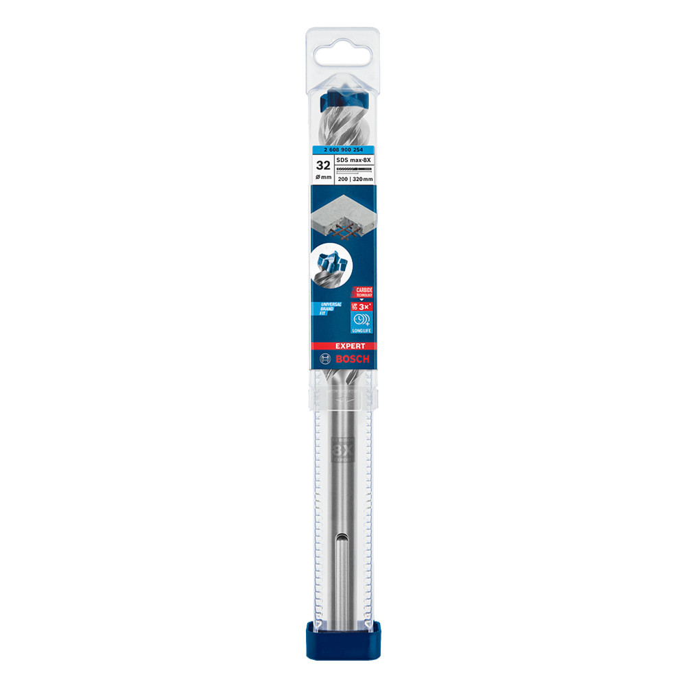 Hosszú élettartam vasbetonnal végzett munka során - A Bosch Carbide Technology és a tömör keményfém fej jóvoltából az EXPERT SDS max-8X típus sokkal tovább bírja, mint a hagyományos kalapácsfúrók. Hatékonyan üti át a betonvasat is, így nincs szükség megállásra, újracélzásra vagy szárcserére, amikor acélt ér. Minden SDS max kalapácsfúróval használható