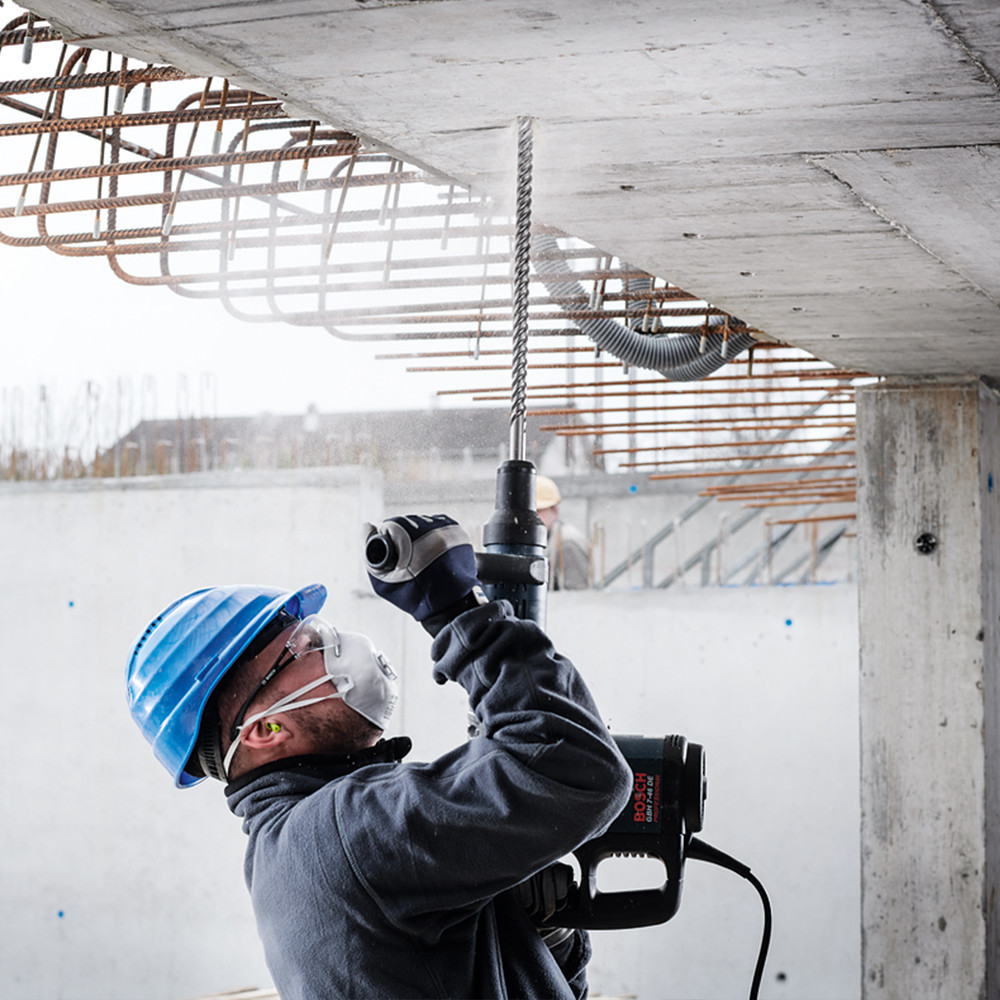 Hosszú élettartam vasbetonnal végzett munka során - A Bosch Carbide Technology és a tömör keményfém fej jóvoltából az EXPERT SDS max-8X típus sokkal tovább bírja, mint a hagyományos kalapácsfúrók. Hatékonyan üti át a betonvasat is, így nincs szükség megállásra, újracélzásra vagy szárcserére, amikor acélt ér. Minden SDS max kalapácsfúróval használható