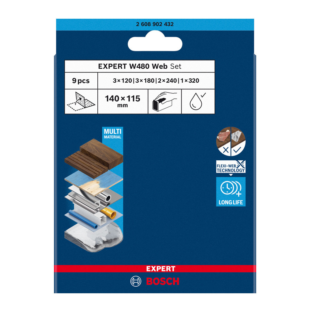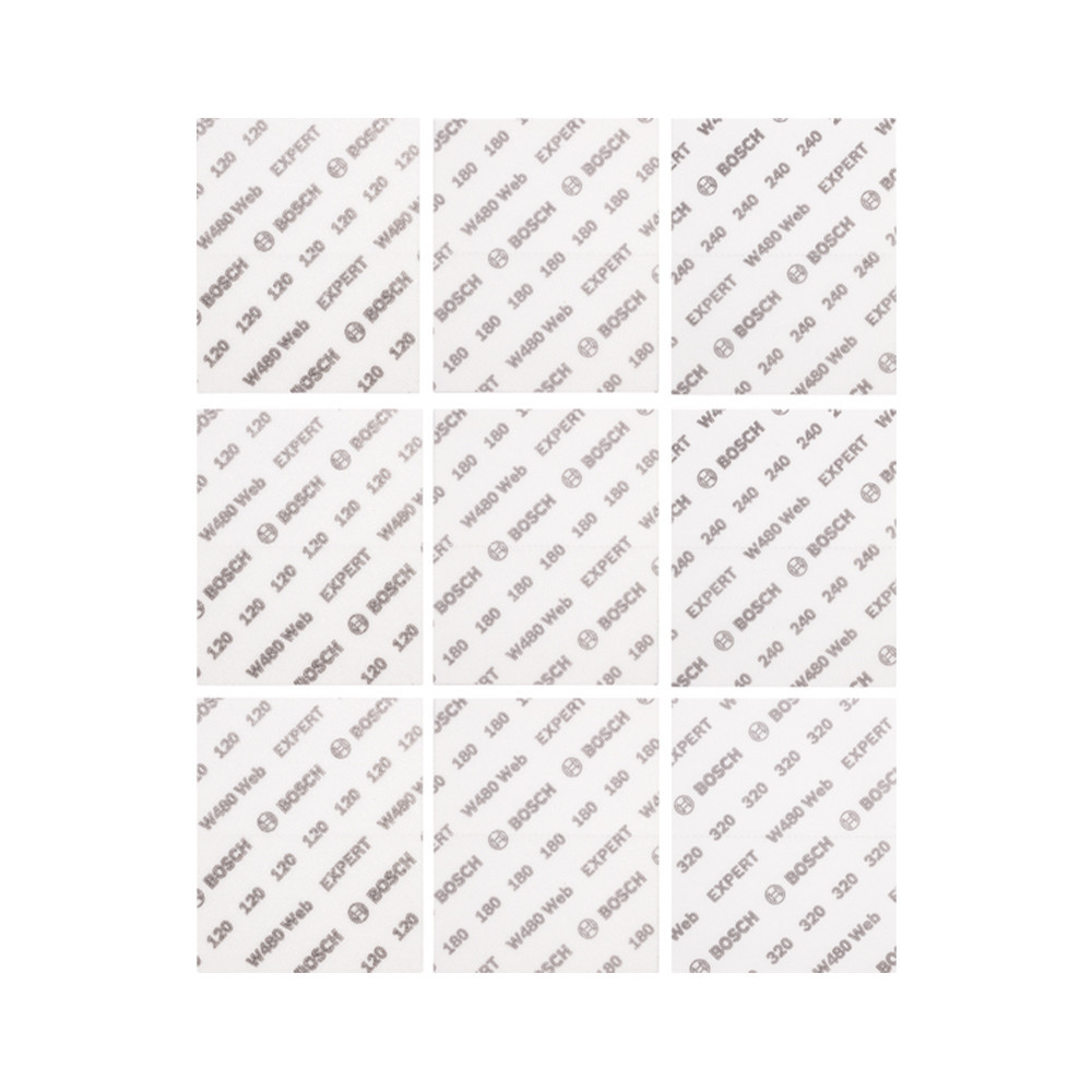 Bosch EXPERT W480 kézi csiszolóháló, 9db-os készlet 3xG120, 3xG180, 2xG240, 1xG320 mosható