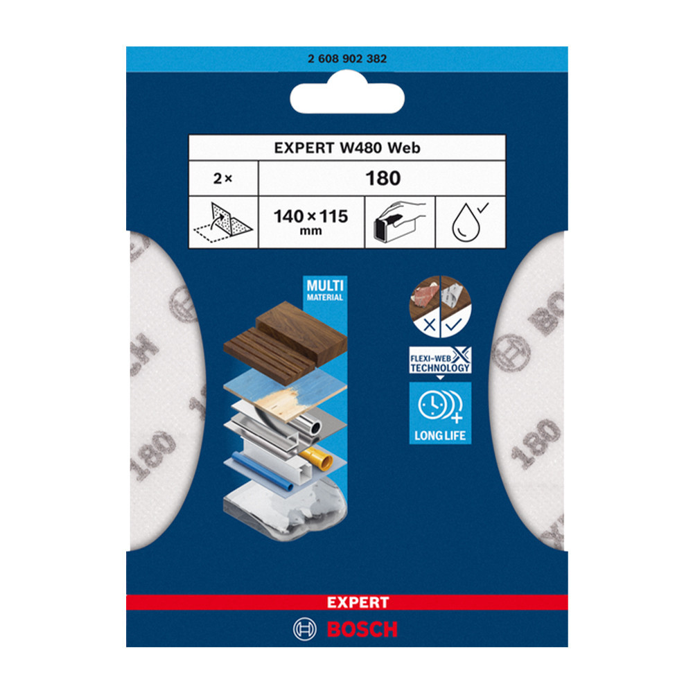 Bosch EXPERT W480 kézi csiszolóháló, G180 2 db 115x140, G180 2 db mosható