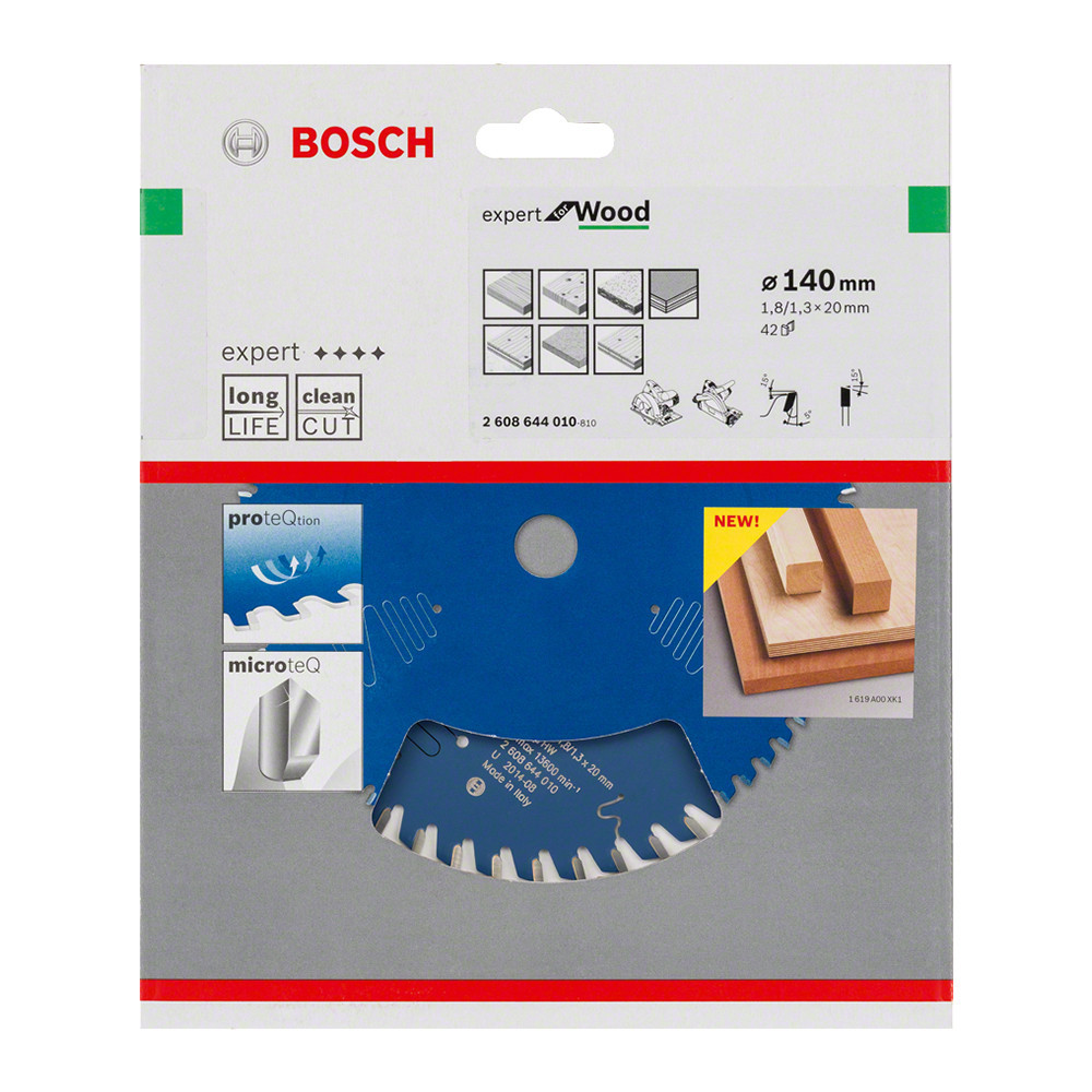 Hosszú élettartam vágás során - A nagy sűrűségű keményfémből készülő (saját gyártású) MicroteQ fogazat a robusztus fogkialakítással együtt ideálisan használható univerzális célokra Szúrófűrészgépekkel és kézi fűrészgépekkel használható. Fogainak számától függően különböző minőség érhető el az Expert for Wood körfűrészlapokkal, amelyek váltakozó ferdeségű élszalag (ATB) foggeometriával készülnek: nagy fogszám esetén a fűrészlap tisztán vág, míg az alacsony fogszám biztos és hatékony vágást nyújt. Szűkítőgyűrűkkel vagy szűkítőgyűrűk nélkül használható, hogy passzoljon a különböző méretekhez