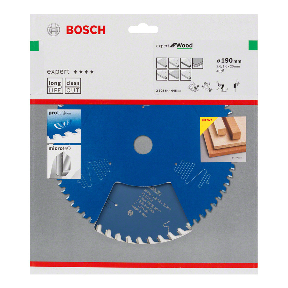 Bosch EXPERT Wood körfűrészlap 190x2,6/1,6 20 T48 fog, ATB kézi fűrészekhez, fához