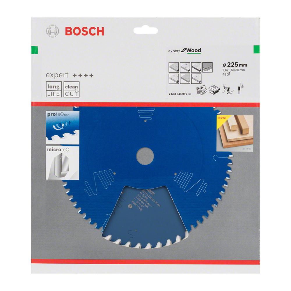 Bosch EXPERT Wood körfűrészlap 225x2,6/1,6 30 T48 fog, ATB asztali fűrészekhez, fához