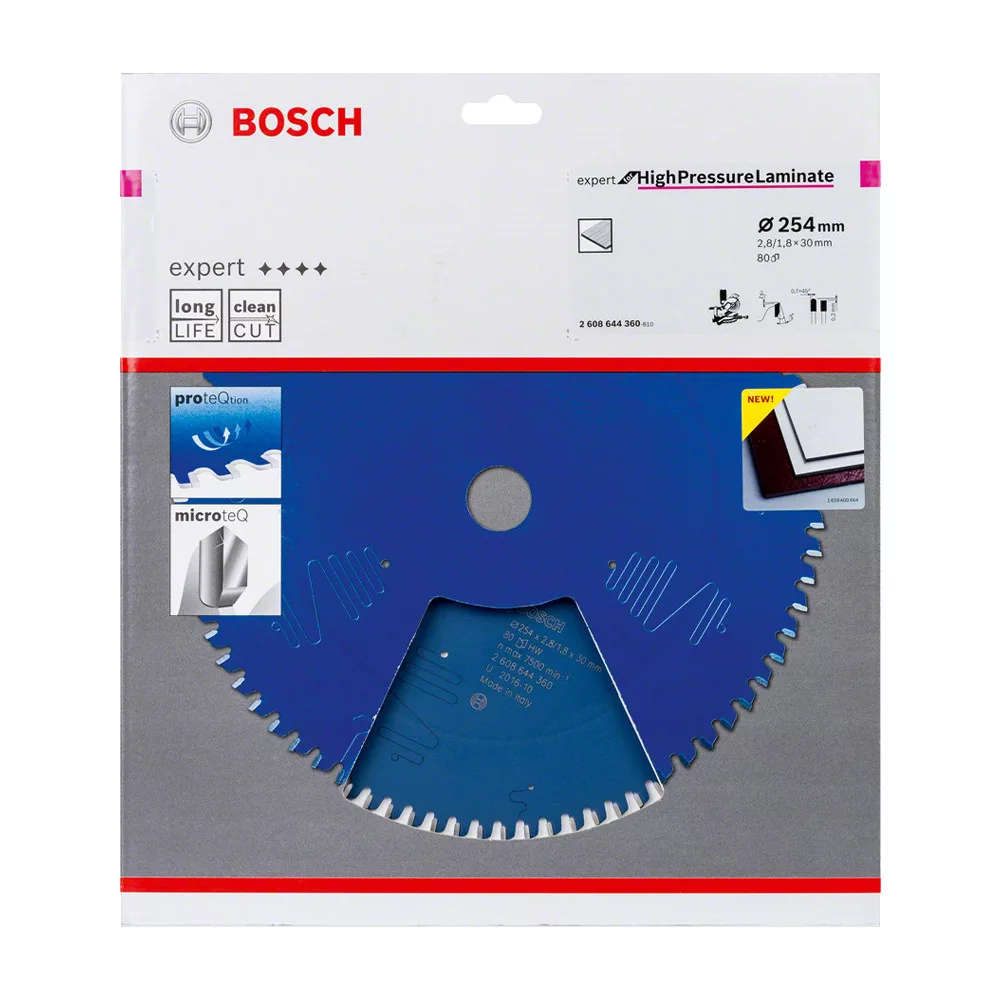 Bosch EXPERT körfűrészlap 254x2,6/1,6 30 T80 fog, gérvágó fűrészekhez rétegelt, kompozit anyag