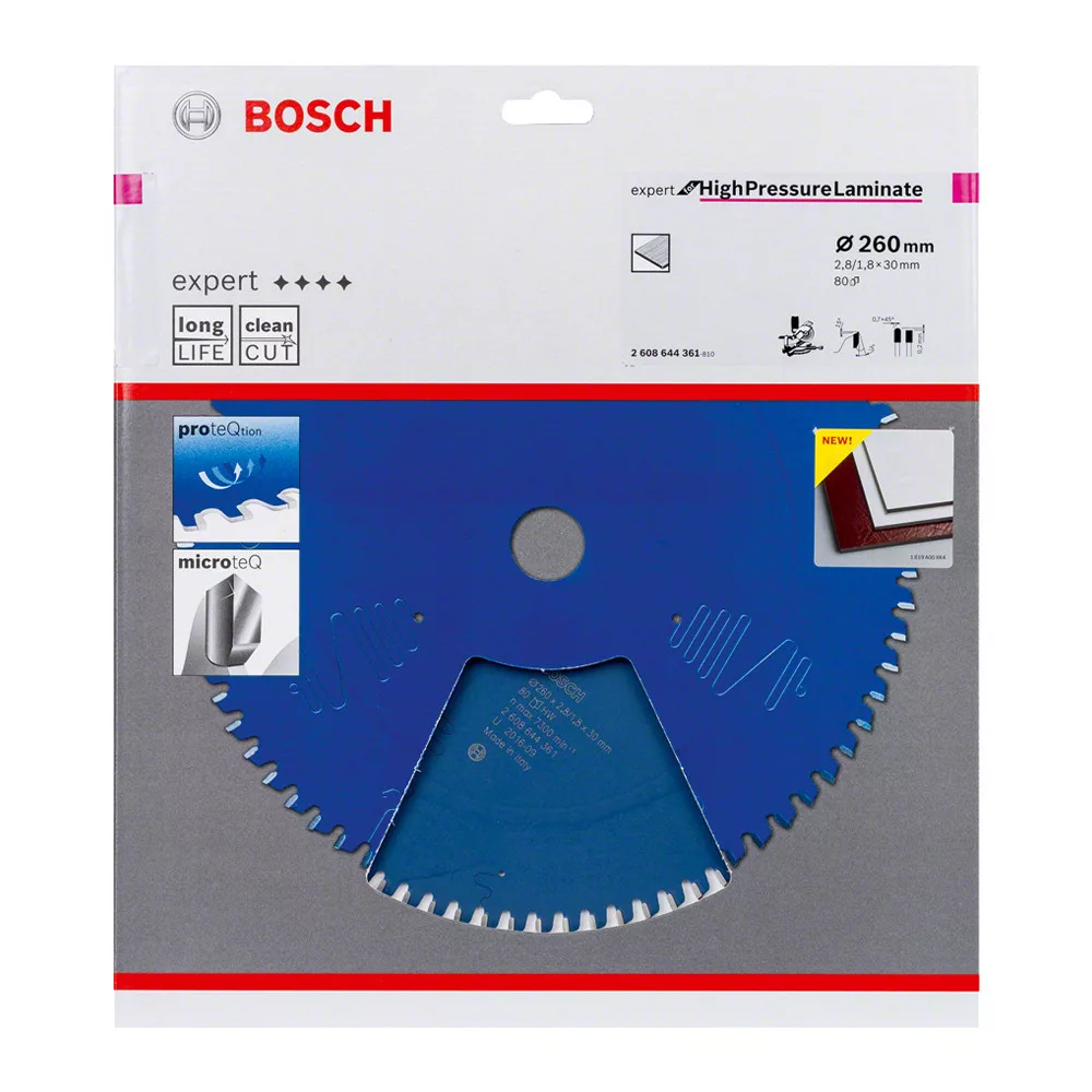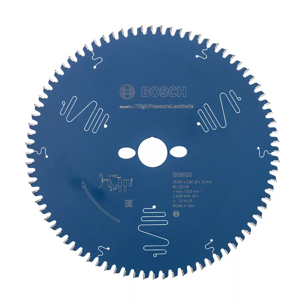 Bosch EXPERT körfűrészlap 260x2,6/1,6 30 T80 fog, gérvágó fűrészekhez rétegelt, kompozit anyag