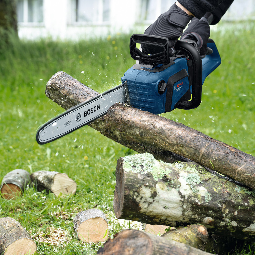 A 40 cm-es láncvezető gerendák, faanyagok és vastag ágak esetén is folyamatos vágást biztosít