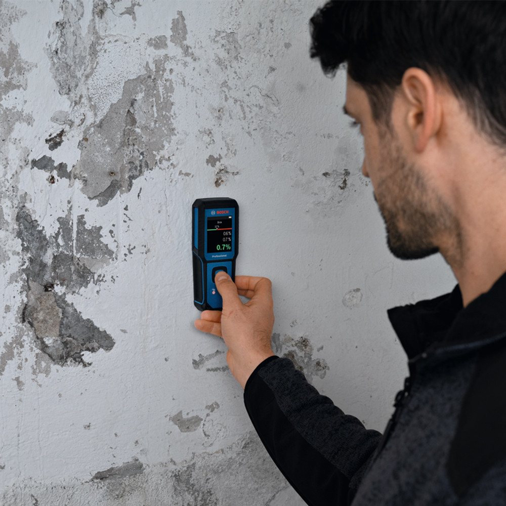 A Professional GMM 1-15 mérőhegy nélküli nedvességmérő elengedhetetlen a gipszkartonozók, festők, létesítménykezelők, építészek, vízvezeték-szerelők és ácsok számára. Hatékonyan azonosítja a nedvességforrásokat, ellenőrzi a felületi állapotokat és leolvassa a nedvességszintet.