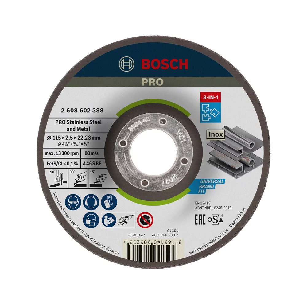 Bosch PRO 3-in-1 hajlított vágókorong, 115x2,5x22,23 mm, inoxhoz, fémhez