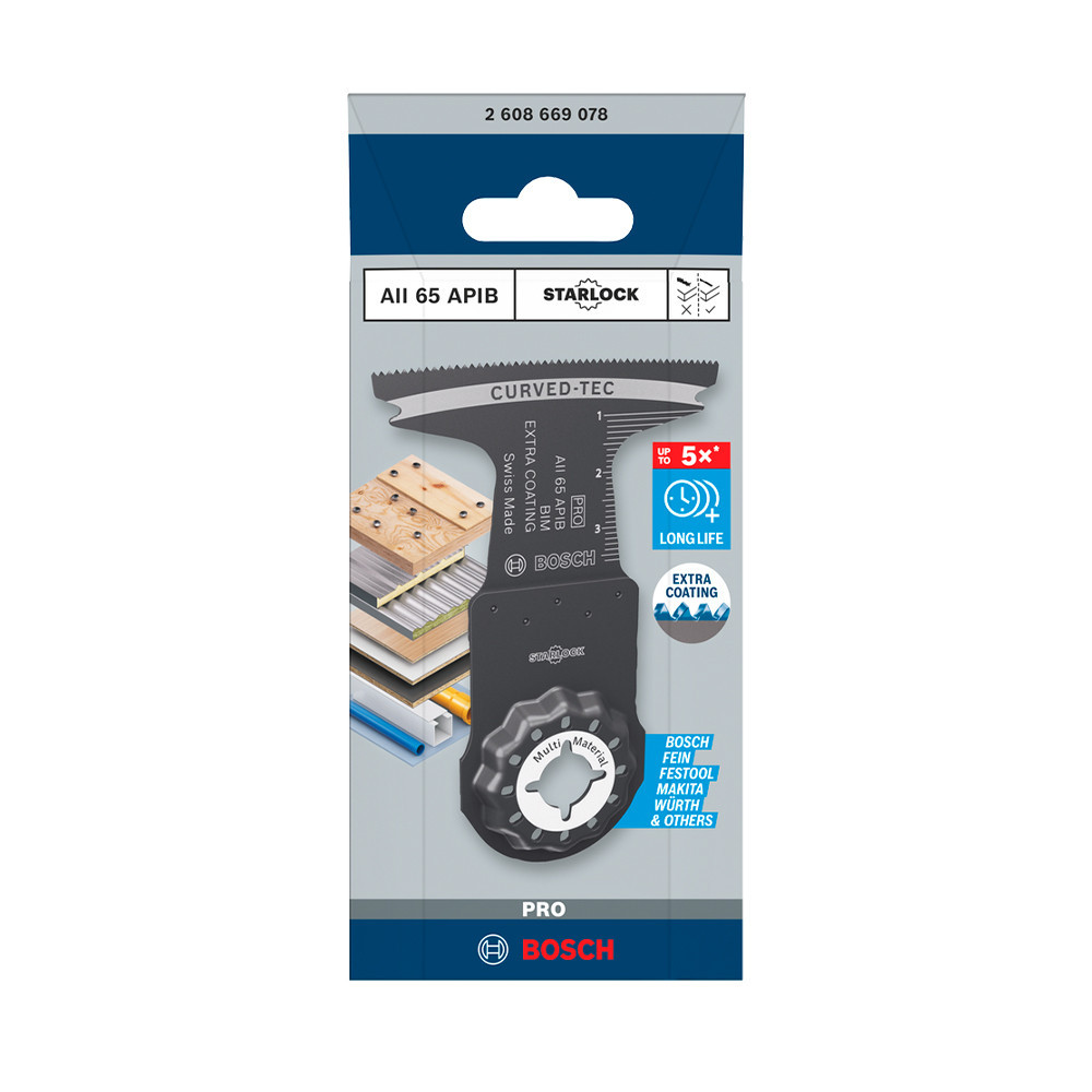 A PRO AII 65 APIB merülőfűrészlap a szilárdság és a tartósság érdekében bimetál szerkezetű. Fogai bevonattal vannak ellátva az extra tartósság érdekében. A vágólap lekerekített vágóéle (Curved-Tec) ideális a szakadásmentes merülővágásokhoz. Az alábbi anyag(ok)hoz ajánlott: szegelt deszka, fém szendvicslemez, műanyag bevonatú lapok, műanyagok