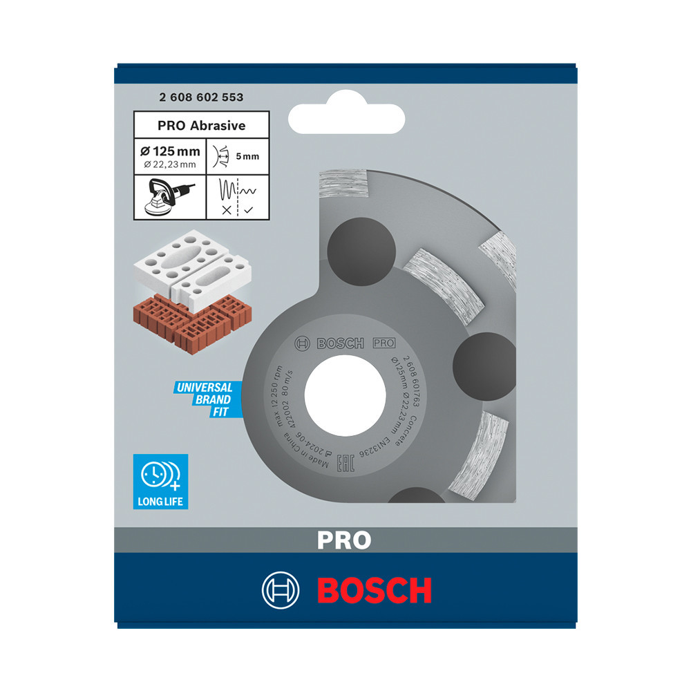 Bosch PRO Abrasive gyémánt fazékkorong, 125 mm, sarokcsiszolóhoz, tégla, mész, homoktéglához