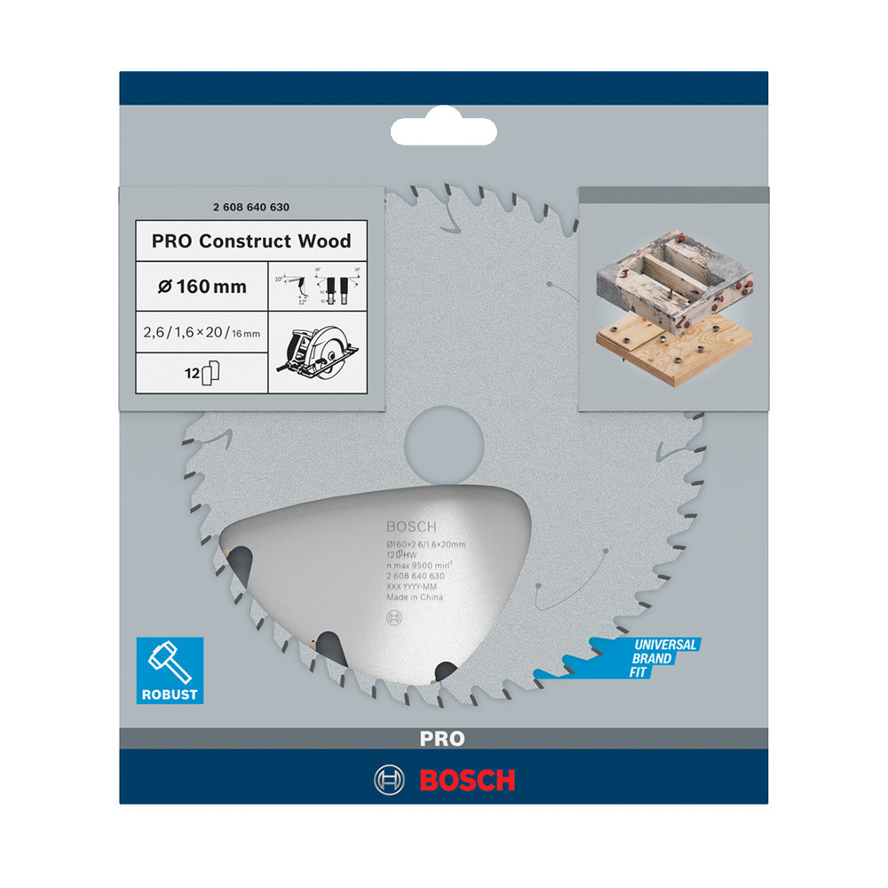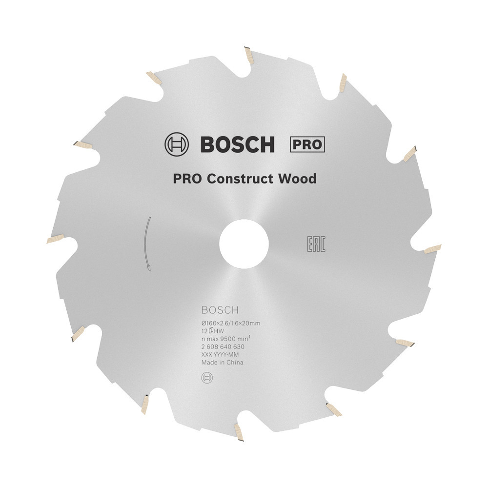Bosch PRO Construct Wood körfűrészlap, 160x2,6x20 mm 12 fog, építőipari és szennyezett fához