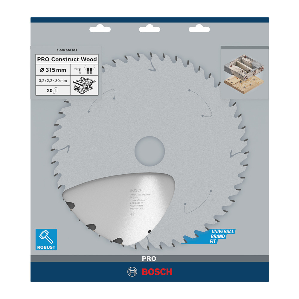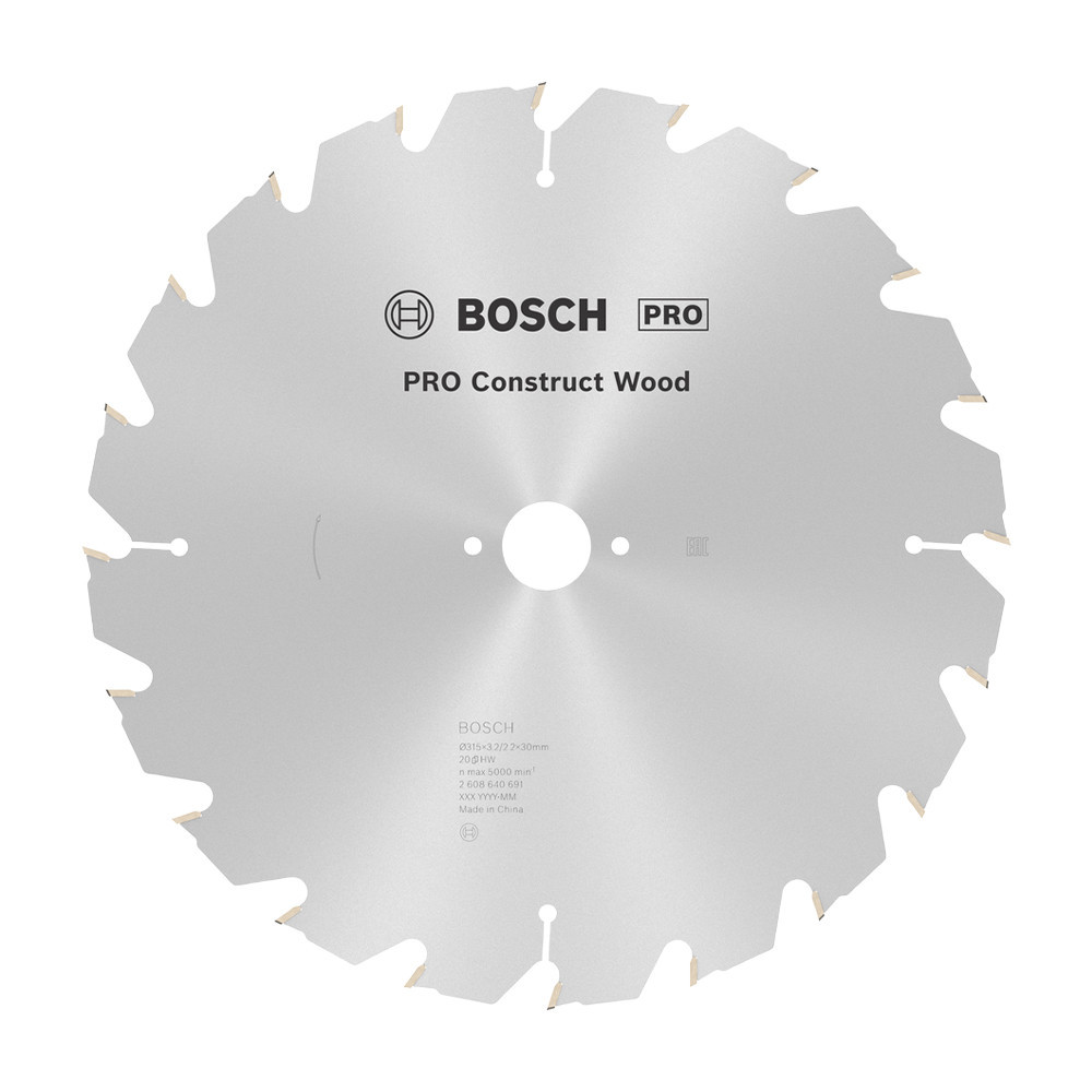 Bosch PRO Construct Wood körfűrészlap, 315x3,2x30 mm 20 fog, építőipari és szennyezett fához