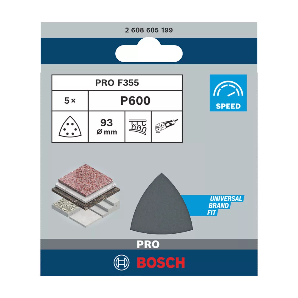 Bosch PRO F355 csiszolópapír, 93 mm, G600 tépőzáras, műanyag, üveg, beton, kő, WPC 5 db