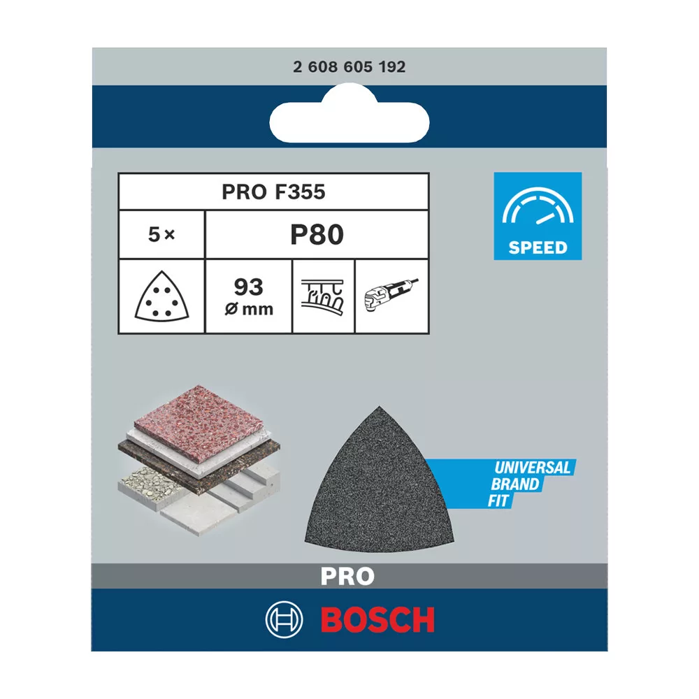 Bosch PRO F355 csiszolópapír, 93 mm, G80 tépőzáras, műanyag, üveg, beton, kő, WPC 5 db