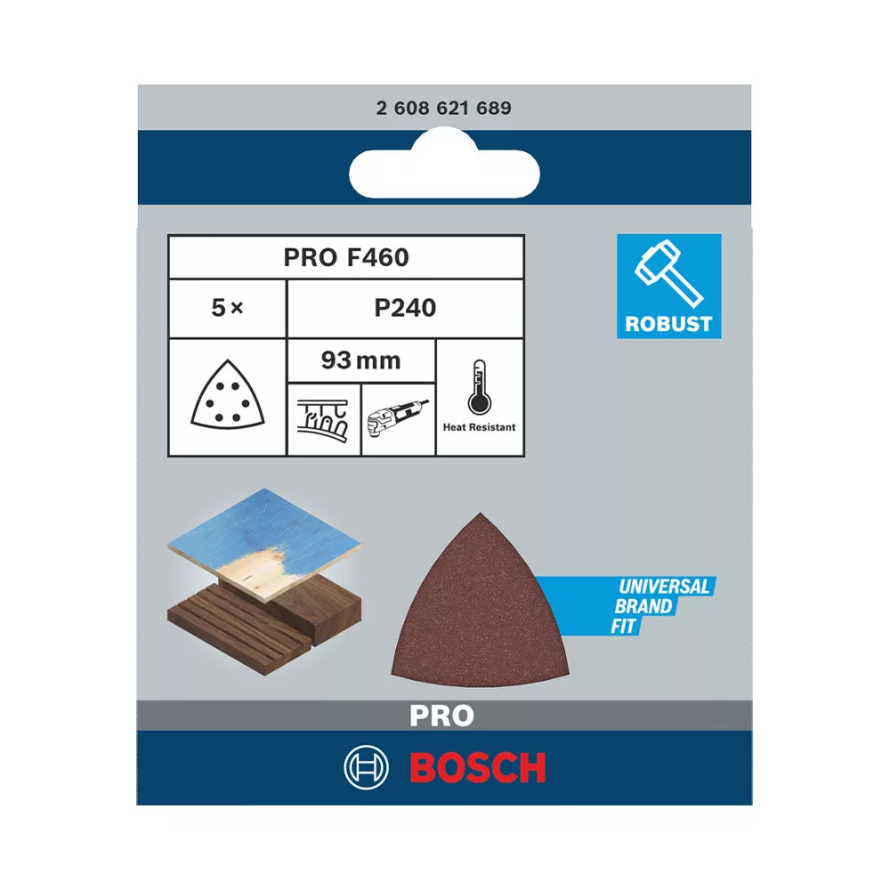 Bosch PRO F460 csiszolópapír, 93x93 mm, G240 5 db, fa, festékhez