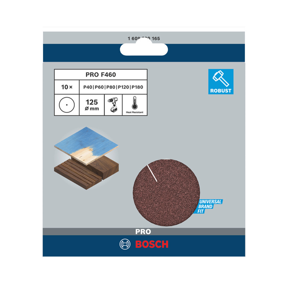 Bosch PRO F460 csiszolópapír, G40, G60, G80, G120, G180, 125 mm, 10 részes, fához és festékhez