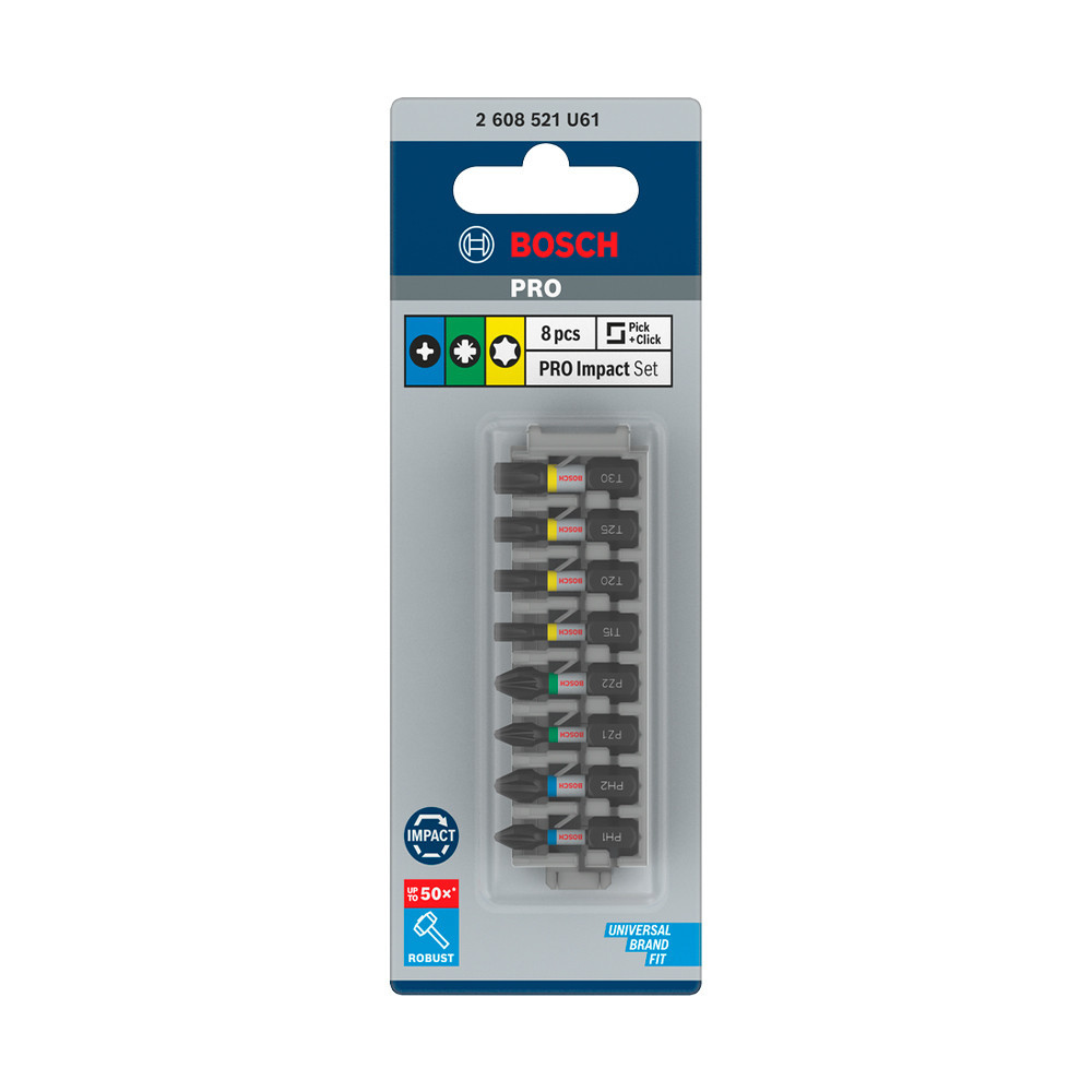 Bosch PRO Impact ütvecsavarozó bitkészlet, 25 mm, 8 részes, vegyes, Pick and Click