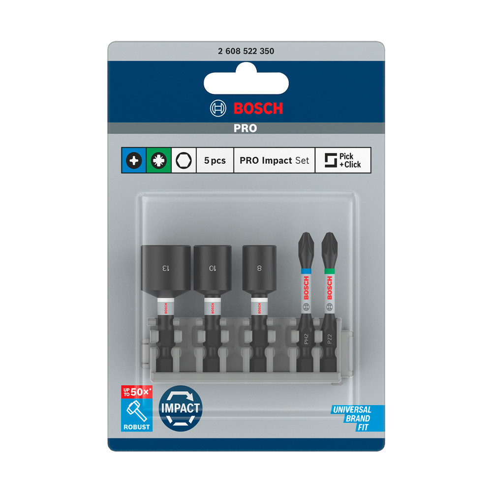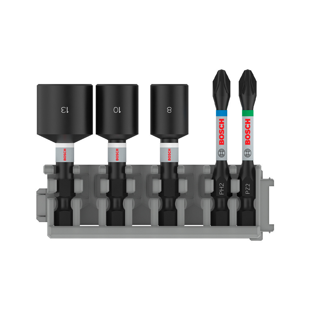 Bosch PRO Impact bitkészlet dugókulcsokkal, PH2x50, PZ2x50, NS8x50, NS10x50, NS13x50 mm, 5 részes