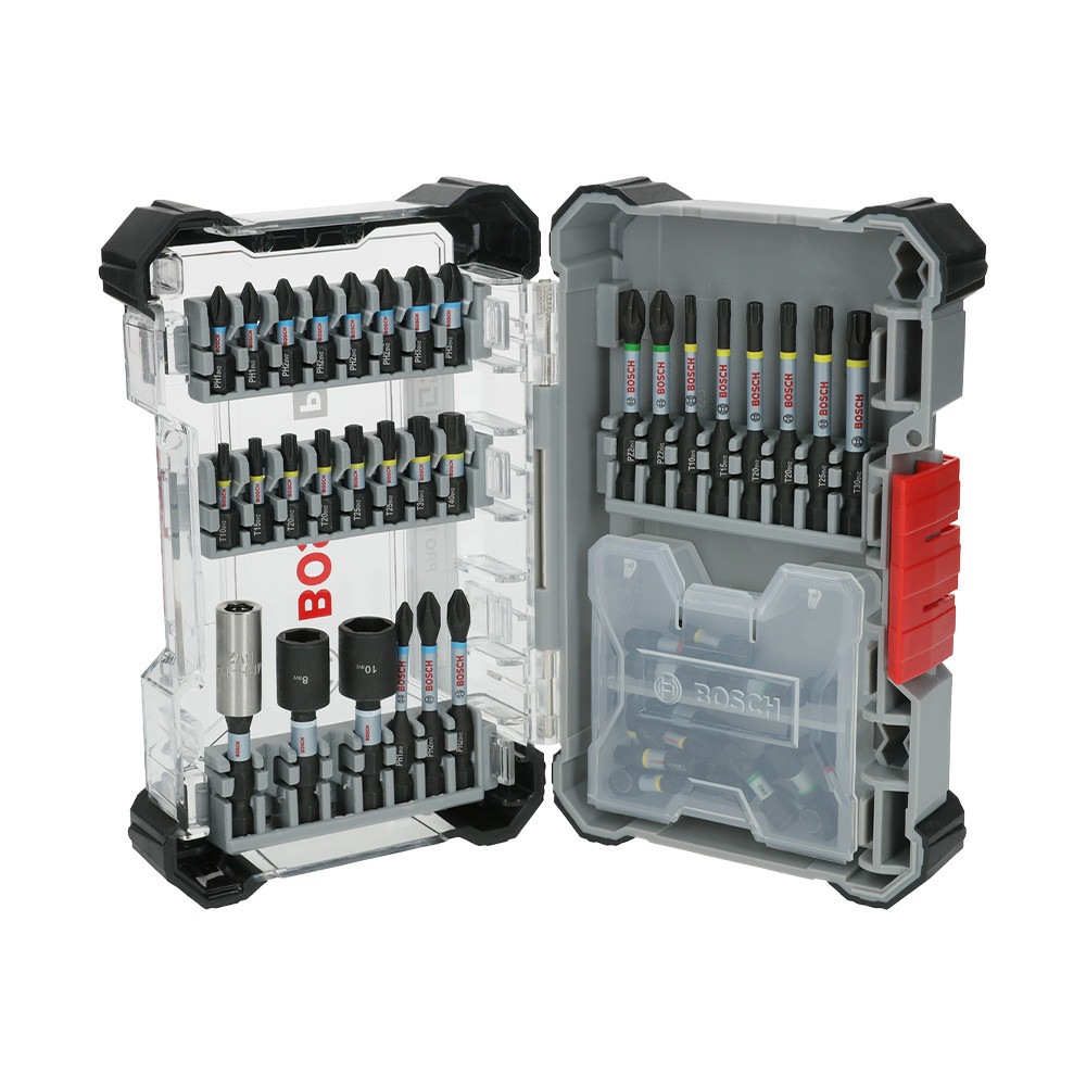 A PRO Impact Set nagyszerű választás az erőteljes, nagy teherbírású ütvecsavarozó bitet kereső szakemberek számára. A bitek hőkezelt, módosított acélból készülnek a kiemelkedő szilárdság és a nagy nyomatékkal szembeni ellenállás érdekében. Torziós zónájuk elnyeli a bit csúcsán keletkező nyomaték okozta feszültséget, hogy biztosan ne törjenek el. A színkódolás érdekében a bitek gyűrűkkel rendelkeznek, amelyek jelzik a fej típusát, valamint lézeres jelölésekkel, amelyek segítenek kiválasztani a szükséges méretet. Erős tokban vannak elhelyezve, olyan tartókba rendezve, amelyekből saját szerszámos ládát építhetsz.