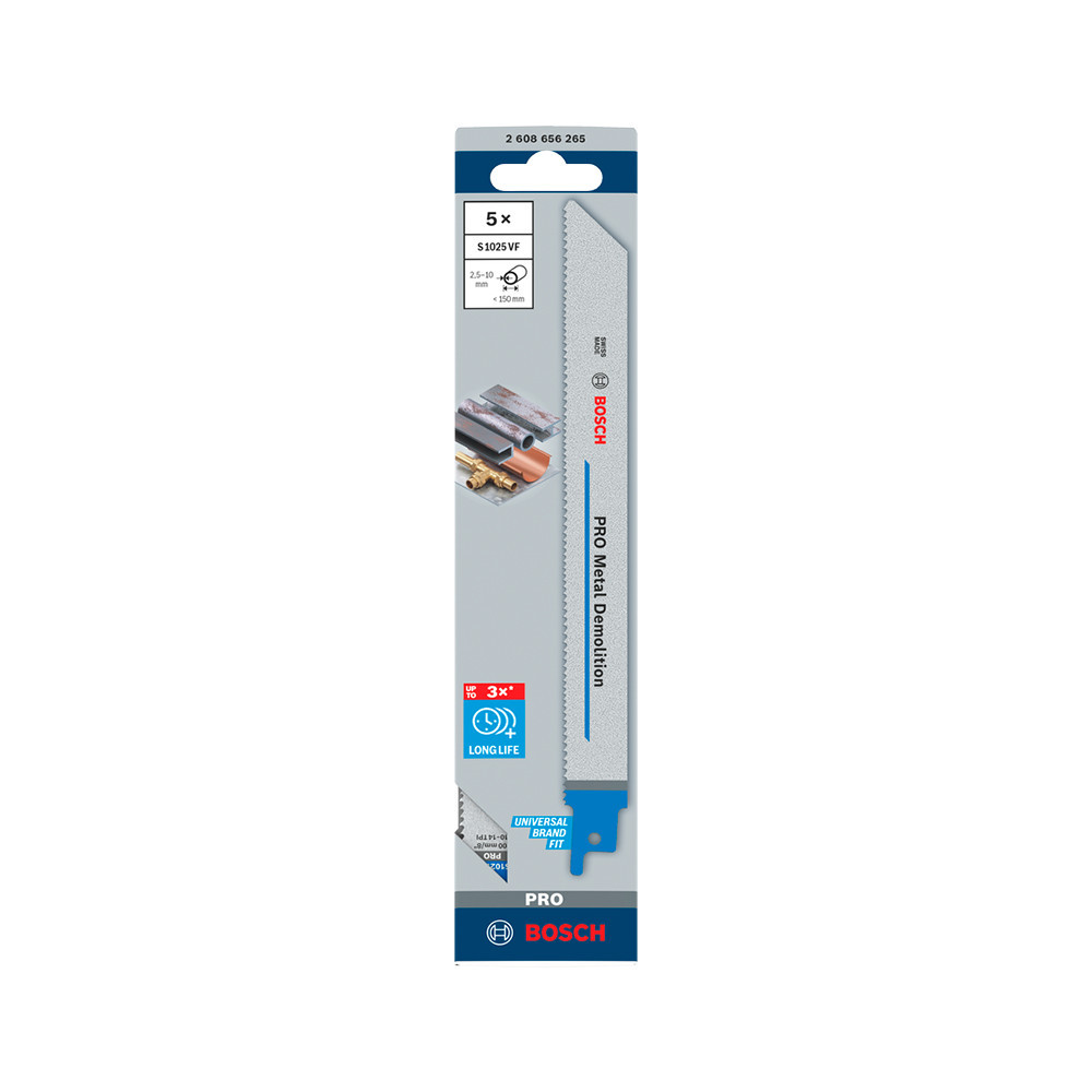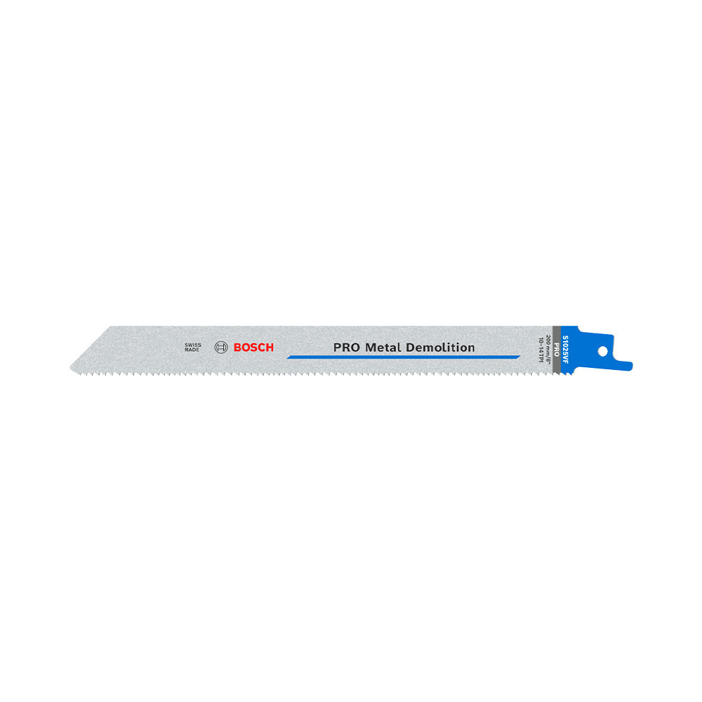 A PRO Metal Demolition S1025VF szablyafűrészlap robusztussága a bimetál felépítésnek köszönhető, amely a vastag HCS-testet edzett HSS fogakkal ötvözi. A továbbfejlesztett Bosch Vario fogkialakítás hatékonyabb vágást biztosít a zökkenőmentes munkavégzés és a hosszú élettartam érdekében. Az alábbi anyag(ok)hoz ajánlott: fémcsövek és -profilok, nemvasfémek