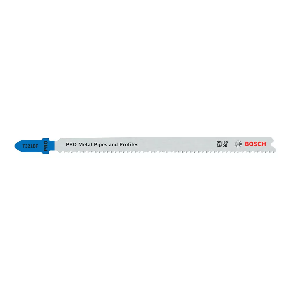 A PRO Metal Pipes and Profiles T321BF szúrófűrészlap bimetál szerkezetű: magas széntartalmú acél (HCS) testre rögzített gyorsacél (HSS) fogazattal rendelkezik. Ez azt jelenti, hogy tartós és megfelelő keménységgel rendelkezik az akár 6 mm vastag falú fémcsövek és -profilok vágásához. A fűrészlap kúpos teste, vékony hornya és mélyen mart, hullámos fogazata sima vágásmenetet biztosítanak. Megnövelt hossza lehetővé teszi, hogy akár 65 mm átmérőjű csöveket és profilokat is vághass a fűrészlappal. Az alábbi anyag(ok)hoz ajánlott: fémcsövek és -profilok, acéllemezek