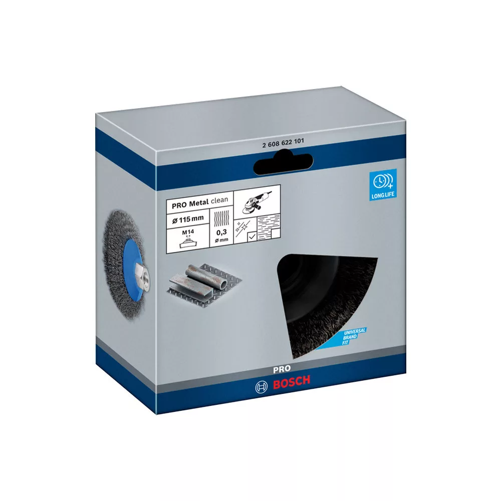 Bosch PRO Metal clean hullámos kúpos kefe, 115x0,3 mm, M14 menetes, fémhez
