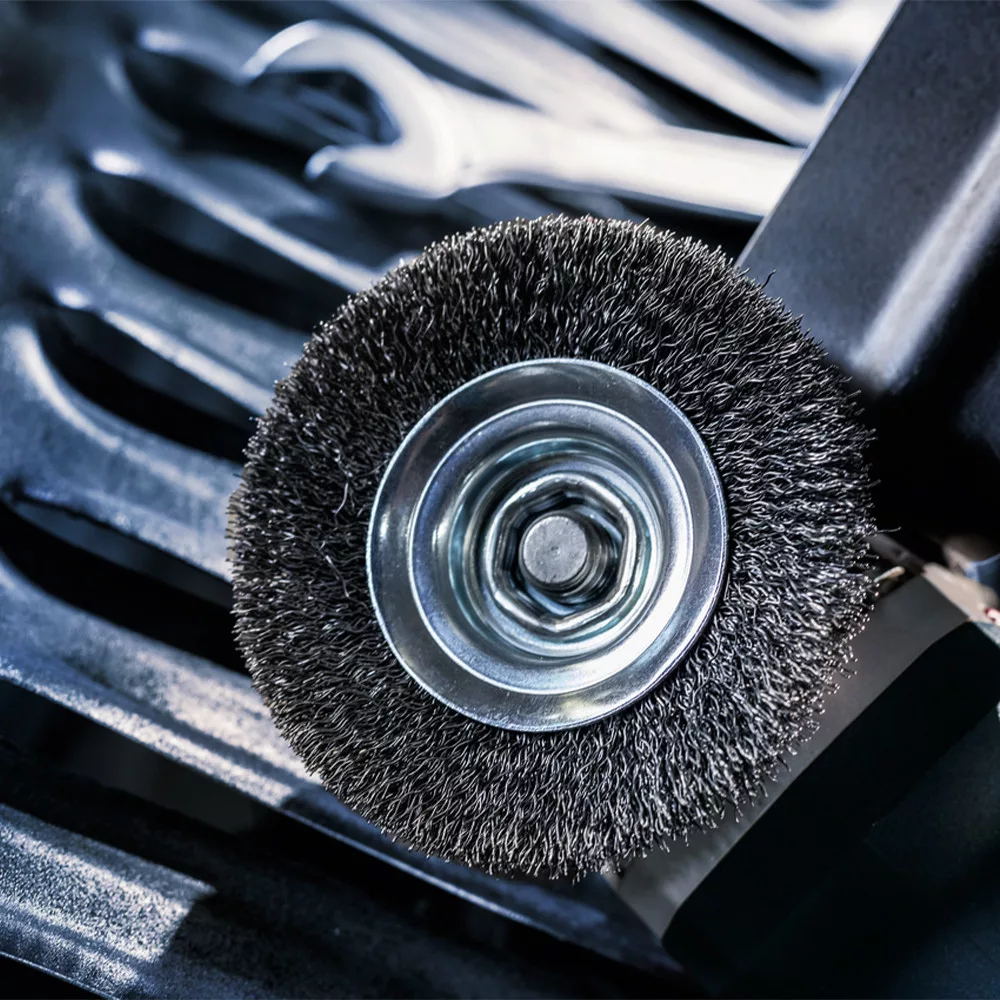 A PRO Metal clean kúpos kefe egy olyan időtálló tartozék, amelyet mindig kéznél szeretnél tartani a fémműhelyedben. Prémium minőségű fonott huzallal láttuk el, hogy hatékonyan megbirkózz a segítségével a könnyebb tisztítási feladatokkal. A huzalok ferde elhelyezkedésének köszönhetően könnyebben hozzáférhetsz vele a kisebb acélfelületekhez, hornyokhoz és élekhez – újra és újra. Az alábbi anyag(ok)hoz ajánlott: acél