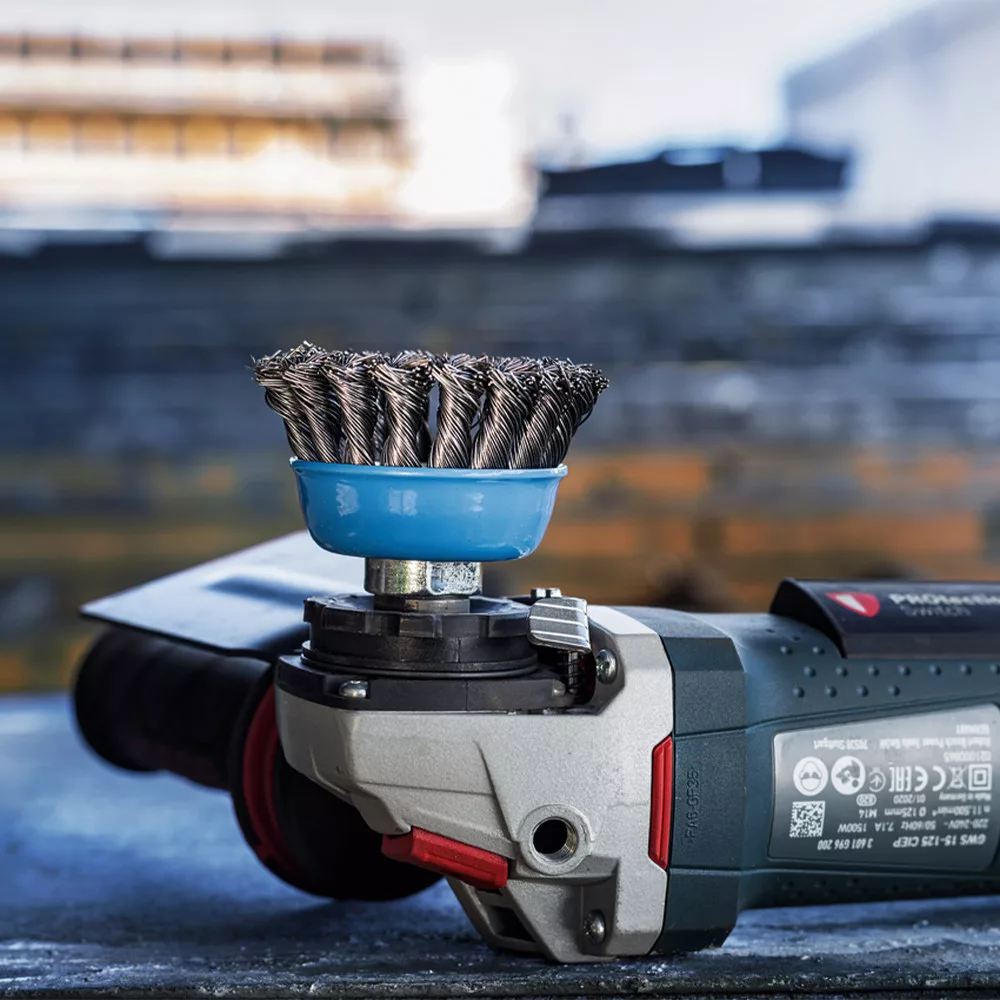 A PRO Metal heavy fazékkefe tartós kiegészítője minden olyan fémműhelynek, ahol hegesztési varratot, erős rozsdát, régi festéket, lakkot és alvázvédőt kell eltávolítani acélfelületekről. A fazékkefe kiváló minőségű fonott huzalból készül, hogy nagy igénybevételt jelentő feladatokhoz használhasd. A csészekefe különböző vastagságú huzalokból kapható. A vastagabb huzalú csészekeféket használd a gyors, durva csiszoláshoz, a vékonyabb huzalúakat pedig a simább felület eléréséhez. Az alábbi anyag(ok)hoz ajánlott: acél