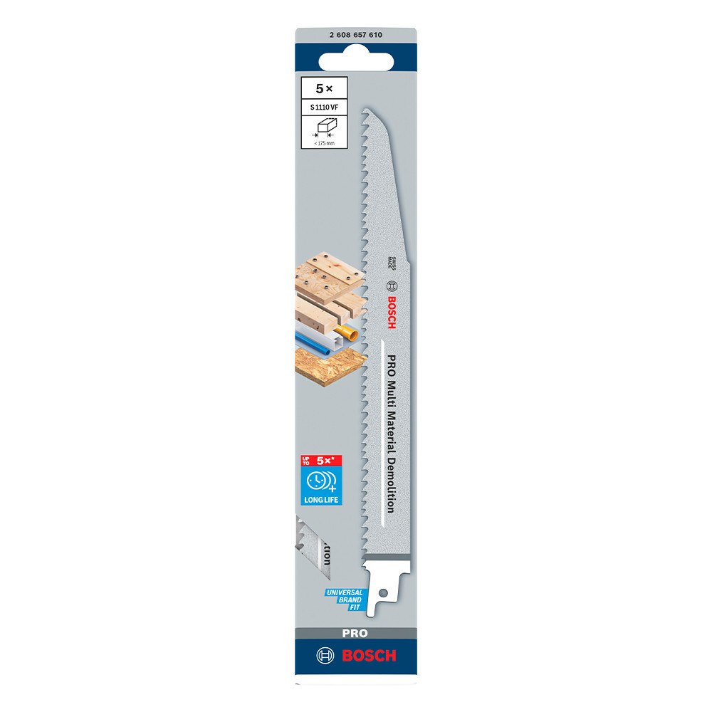 Bosch PRO Multi Material Demolition S1110VF orrfűrészlap, 1,6x22x225 mm, 5 db, fa, műanyag, szeg