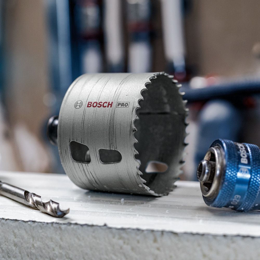 A PRO multi Material körkivágó továbbfejlesztett fogkialakítással rendelkezik a gyors és sima vágásokhoz, a hosszú élettartam érdekében magas kobalttartalmú HSS ötvözetből készült fogazattal. Hatékonyan megbirkózik az acélburkolattal és a gipszkartonnal is. A Power Change plus gyorsabbá teszi a körkivágók és a központosító fúrószárak cseréjét, és megkönnyíti a furatmag eltávolítását. Az alábbi anyag(ok)hoz ajánlott: puhafa, gipszkarton, műanyagok, fémcsövek és -profilok, nemvasfémek