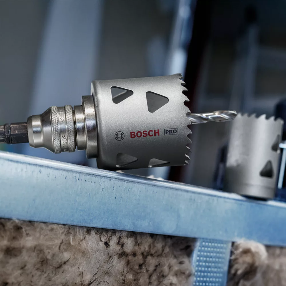 A PRO multi Material továbbfejlesztett fogkialakítással rendelkezik a gyors és sima vágásokhoz, a hosszú élettartam érdekében magas kobalttartalmú HSS ötvözetből készült fogakkal. Hatékony körkivágást tesz lehetővé acélburkolatban és gipszkartonban. A Power Change Plus gyorsabbá teszi a körkivágók és a központosító fúrószárak cseréjét, és megkönnyíti a furatmag eltávolítását. Az alábbi anyag(ok)hoz ajánlott: puhafa, gipszkarton, műanyagok, fémcsövek és -profilok, nemvasfémek