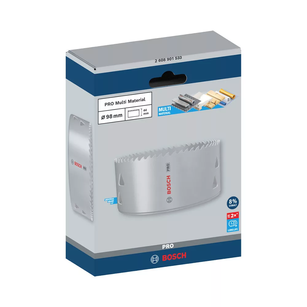 Bosch PRO Multi Material körkivágó, 98 mm, kobalttal, fa, nemvasfém, műanyag, gipszkarton