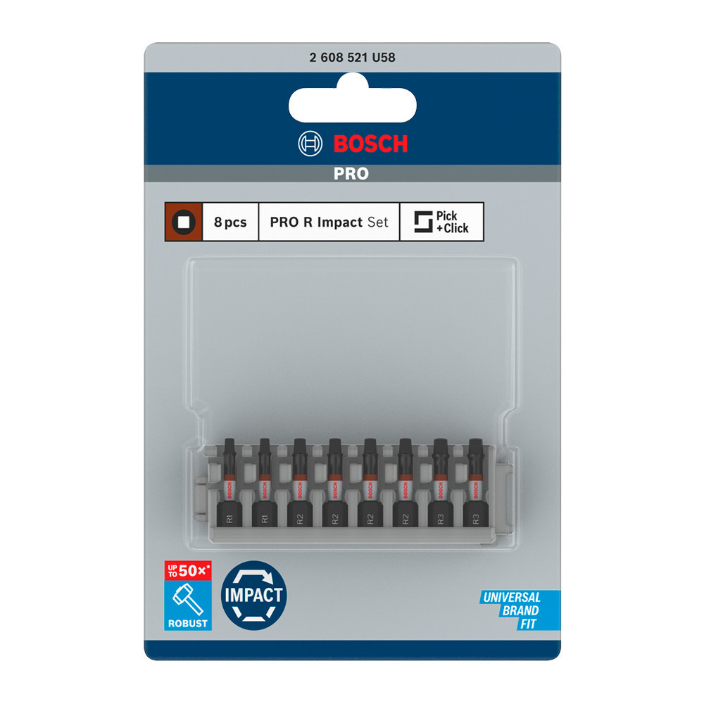 Bosch PRO Robertson ütvecsavarozó bitkészlet, R1, 2 db, R2, 4 db, R3, 2 db, 55 mm, 8 részes