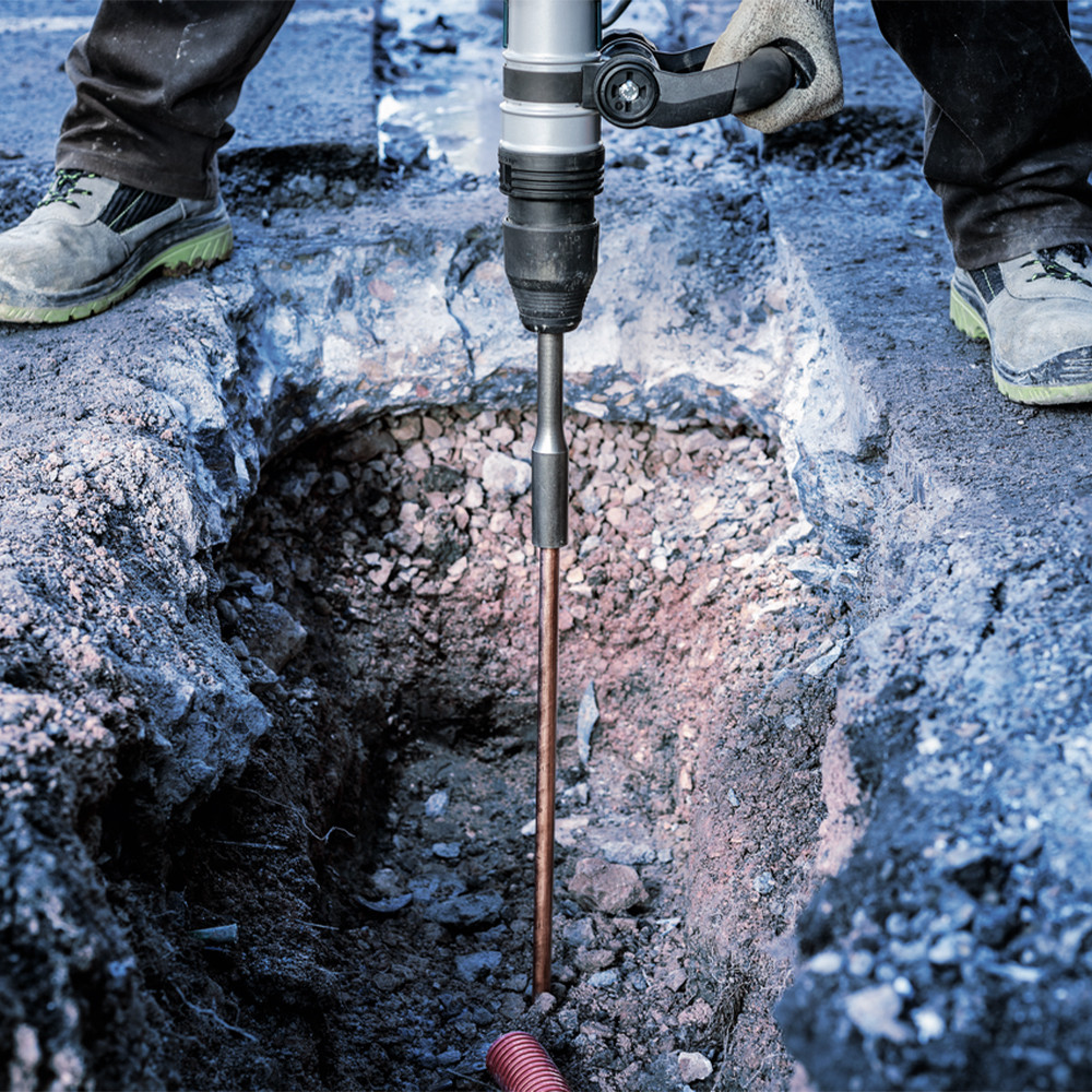 A PRO SDS max Earth Rod Driver nagyszerű választás olyan villanyszerelők számára, akiknek acélrudakat kell leverniük a földbe, pl. villámvédelmi rendszerek telepítésekor. Használd SDS kalapácsfúróddal az acélrudak és horgonyok gyorsabb leütése érdekében. Az alábbi anyag(ok)hoz ajánlott: talaj, kavics